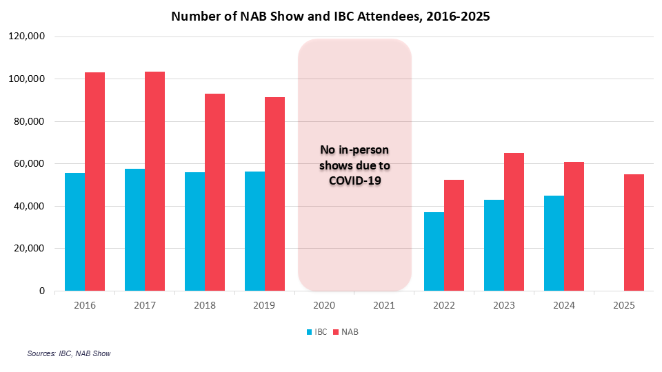 Trade shows have always been a cornerstone of our industry, driving technology launches, sales, roadmaps, and development. However, the declining trend in trade show attendance experienced by major events such as IBC and NAB Show after the advent of the pandemic has led marketing leaders to increasingly question their effectiveness. For example, many marketers have been recently demanding trade show organizers to provide more granular data on attendance (e.g., buyer seniority).